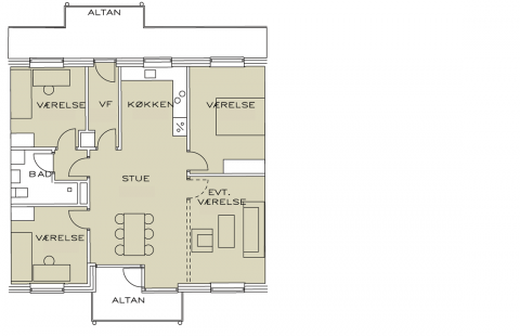 Velindrettet lejlighed på 130 kvm (brutto) med altan (have i stuelejlighed), depotrum og p-plads i kælder. Mulighed for at opdele stue, så lejligheden får et ekstra rum.